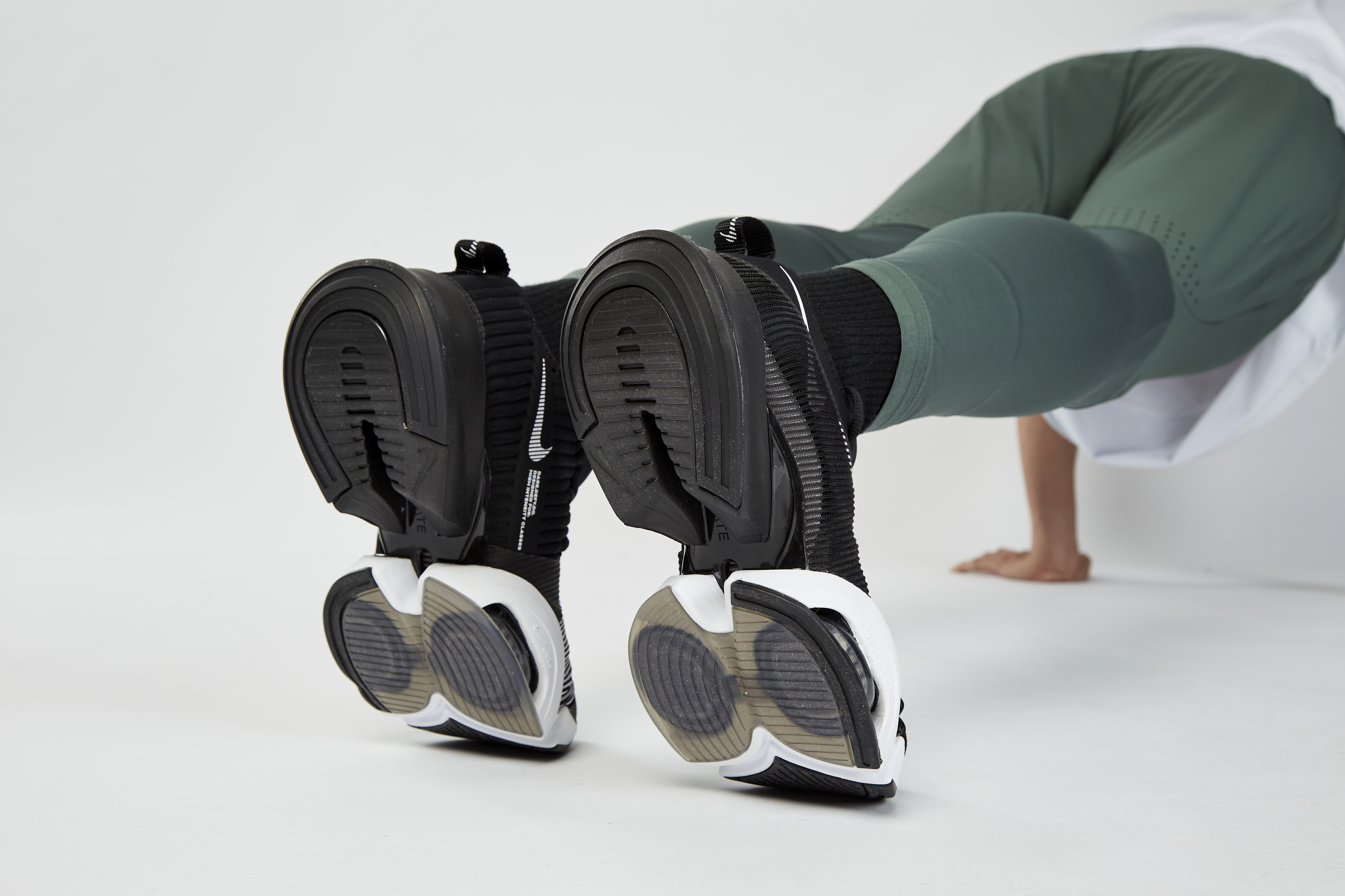 在練習硬舉或是深蹲等,需要透過地面回傳能量反饋的動作,貫穿全掌式鞋底墊片(FLYPLATE),將壓力平均分散至 Zoom Air 氣墊上,提供足夠支撐力。