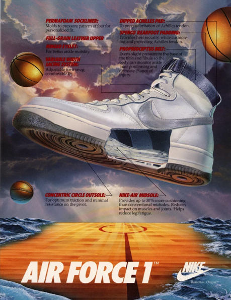 設計師 Bruce Kilgore 操刀,並以美國總統專機「 空軍一號(AF1)」命名,當年一口氣簽下六名 NBA 球星,組合成著名的「Original Six」
